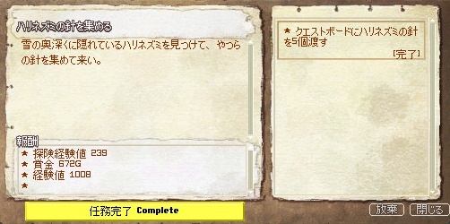 『 探検EXP3824、賞金10,752、EXP16,128 』 獲得